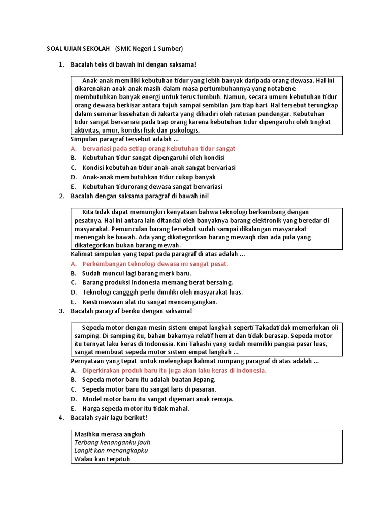 90 Contoh Soal PG Bahasa Indonesia Kelas 10 SMAMA dan Kunci Jawabnya Terbaru - Selamat Belajar adik adik pastinya dalam waktu dekat ini adik adik mau menghadapi ujian ya nah jangan kawatir pada kesempata kali ini admin ingin berbagi soal Pilihan Ganda untuk adik adik dengan mata pelajaran Bahasa Indonesia untuk kelas 10 SMAMA Soal ini sudah admin sediakan dalam bentuk file word yang. Apresiasi satra adalah kegiatan menggauli cipta sastra dengan sungguh-sungguh hingga tumbuh pengertian penghargaan kepekaan pikiran kritis dan kepekaan perasaan yang baik terhadap cipta sastra. Mudah2an tiap minggu ane bisa memberikan jawaban TTS Kompas Minggu semua dan ditunggu partisipasi kaskuser lain untuk memberikan jawaban dan koreksi di thread ini Manfaat menjawa.