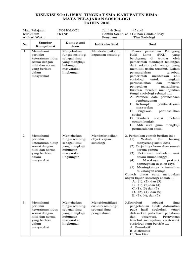 Kisi Kisi Dan Kunci Jawaban Soal Usbn 2018 Docx