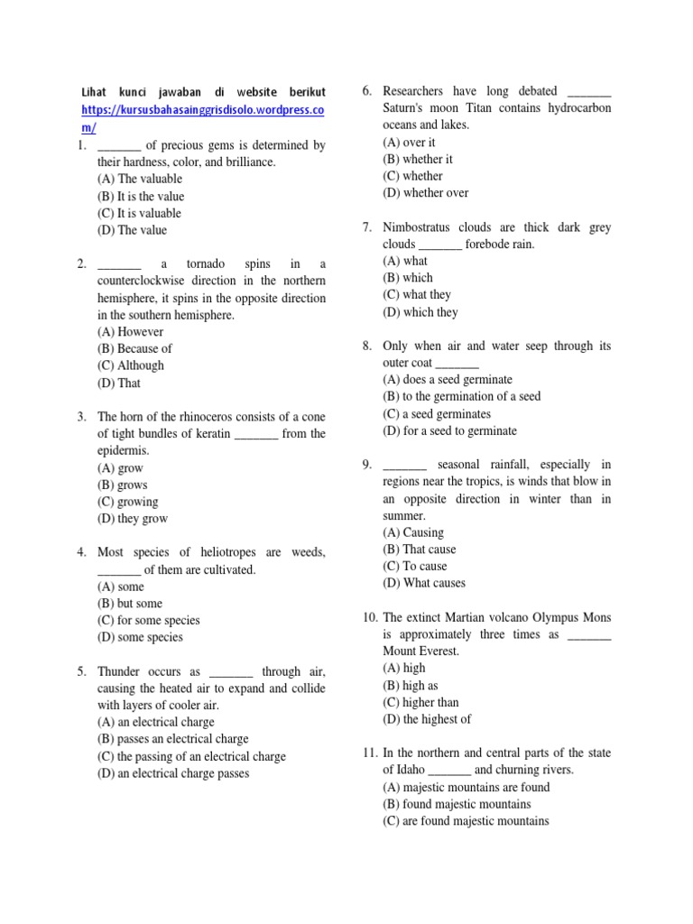 Contoh Soal Toefl Dan Kunci Jawaban Mountains Seed
