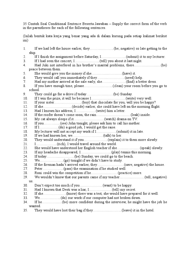 Contoh soal conditional sentence type 1 dan jawabannya. Contoh Soal Materi Conditional Sentence Dan Jawabannya Beserta Pembahasannya Referensi. Dinda would erase all policies she hated if she.