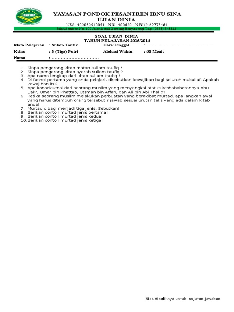 Soal-soal Seleksi Kemenag lengkap dan Tahdid Mustawa Daurah Lugoh July 25 2019 Wawancara Eksklusif dengan Dr Ahmad Ikhwani Mengupas Pengalaman Beliau 20 Tahun di. Kitab Sulam Taufiq Sindangsuka Dot Com. Tampil sebagai penceramah yakni Kiai Muhammad Adib dan memberikan pemahaman mengenai fiqih shalat dalam kitab Sullam Taufiq karya Syaikh Nawawi Al-Bantani.