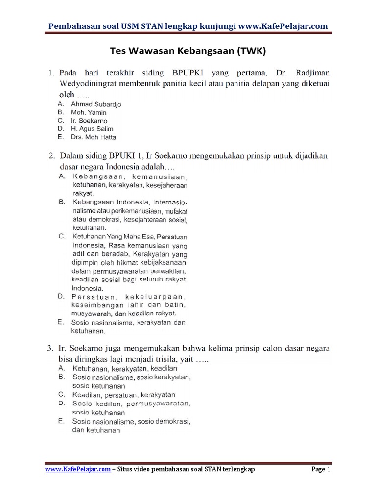 Soal twk stan pdf. Contoh Soal Tes Wawasan Kebangsaan Twk Spmb Pkn Stan. Berikut ini contoh Soal Latihan dan Pembahasan Tes CPNS TWK TIU DAN TKP Pdf - 12.