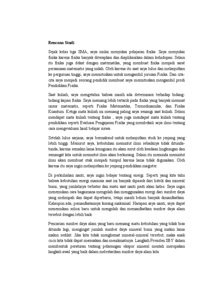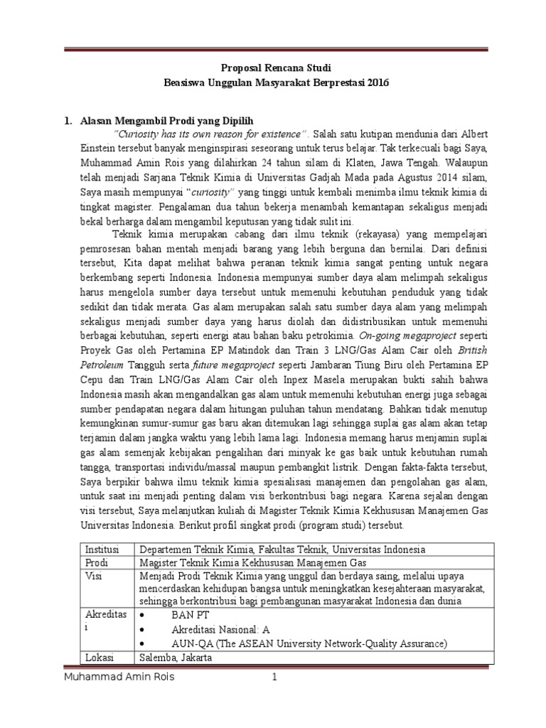Mar 15 2017 Sekedar info sepertinya BU sudah memberikan format penulisan proposal rencana studi di Juknisnya juknis bisa download di website resmi BU. Kedua buatlah rencana studi kalian se otentik mungkin artinya jangan mencontoh alur atau tata bahasa tulisan orang lain jadilah diri kalian sendiri. Yang dimaksud rencana studi yang bagus di sini adalah rencana studi yang berisi rencana studi atau penelitian yang akan ikut berkontribusi mengatasi permasalahan-permasalahan tertentu di bidang yang dilamar.