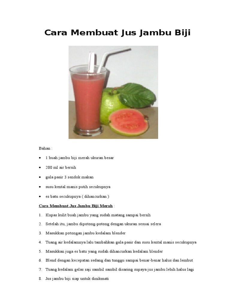 Cara Membuat Jus Jambu dan Asal Mula Jambu Biji Di Indonesia. 21 Mar 2018 1630 WIB Diperbarui 21 Mar 2018 1630 WIB. 1 sdm sirup gula.